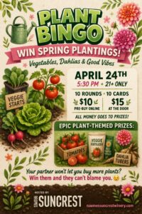 Ready to test your luck and your green thumb? Come play Plant Bingo on 4/24 at 5:30 PM—the game where you can finally say, “I didn’t buy another plant… I won it.”